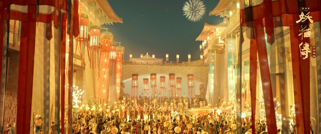 总的来说,整部电影有两条线索,第一条可以被看作是杨贵妃秘史,揭秘她的死亡和爱情的真相,这一条类似揭秘历史的线索可以算是一条明线,集结了影片中所有的矛盾和转折。这样的安排也有取悦观众的意思,毕竟杨贵妃最后的死在中国和日本民间都是脍炙人口的话题,李白还有白居易也留下了不朽的诗篇去歌颂杨贵妃和唐玄宗的爱情,还有杨贵妃绝世的美,甚至在日本都有杨贵妃的墓,因为有民间传闻说杨贵妃最后逃去了日本度过了她的余生。而这部《妖猫传》则加入了一些神话玄幻的色彩,讲述了一个学幻术的少年白龙(刘昊然饰)对杨贵妃的爱慕,虽说白龙并不是本片的主要角色,但妖猫是他灵魂的化身,白居易(黄轩饰)和空海(染谷将太饰)对杨贵妃死亡真相的调查一步步引出了这段被埋葬的历史,原来杨贵妃最终被施了尸解大法后活埋,保全了玄宗的颜面还有统治,但白龙救出贵妃的时候她已经没有了呼吸,一味想复活贵妃的白龙无法释怀这份执念,最终成就了妖猫这个线索角色。
