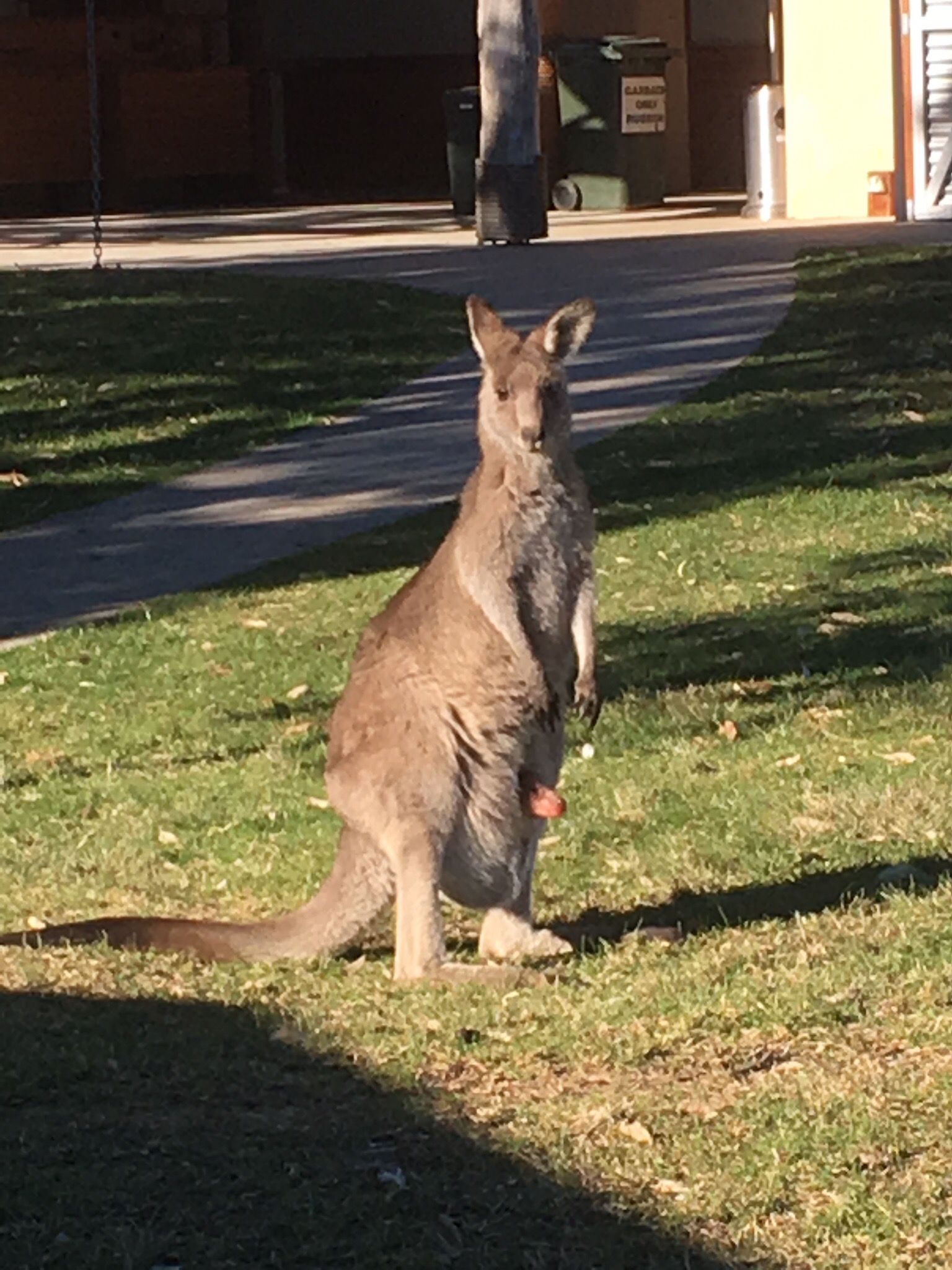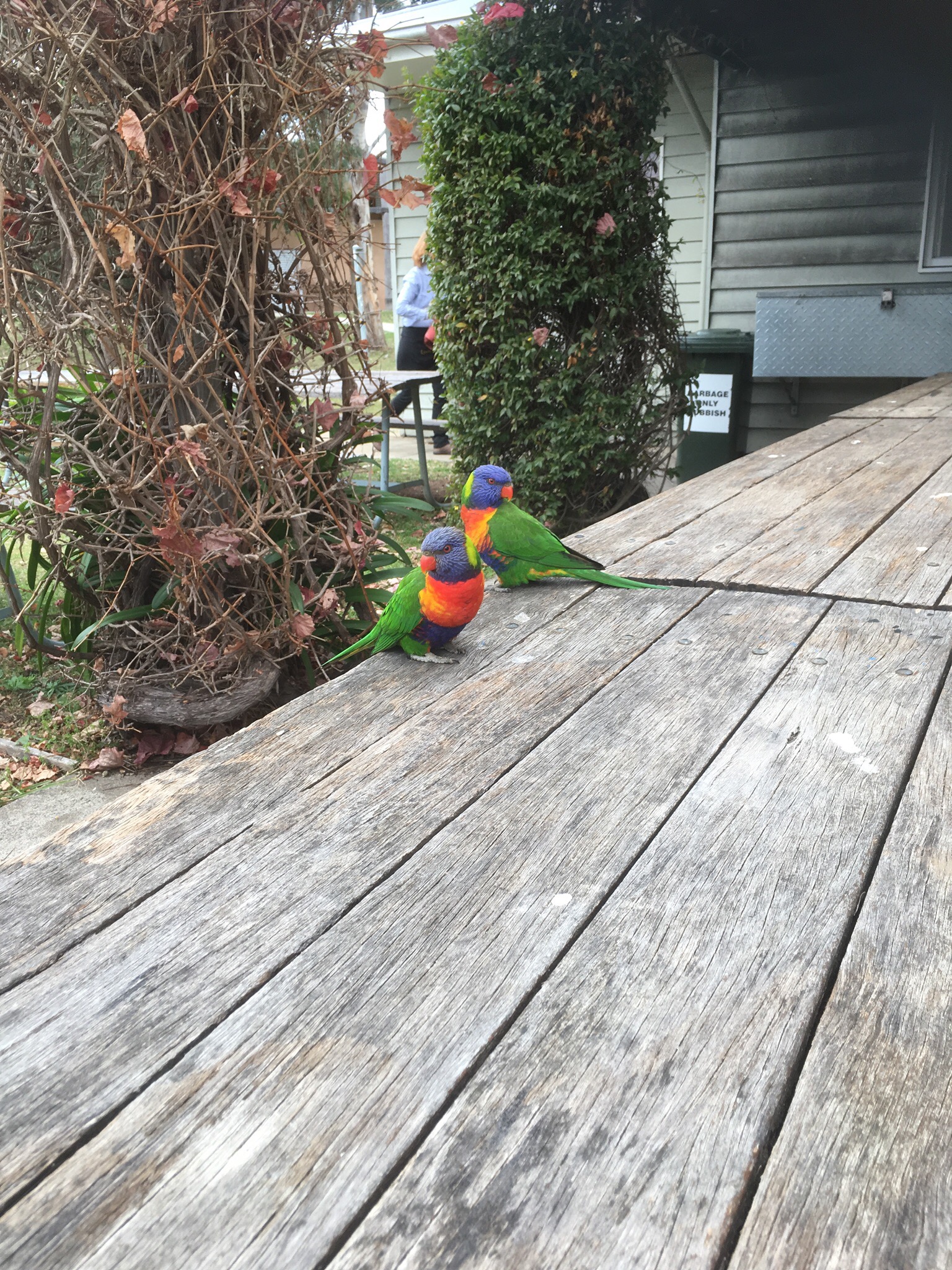 I am in the country of Kangaroos! There is just a kangaroo next to the canteen on the Kioloa Campus, ANU. She seems to have a baby in her ‘pocket’! I am sorry if the picture looks a bit blurred; I need to zoom in quite a lot to capture the animal without disturbing her (or have I already disturbed her peace?).This is one of my favourite pictures. I like how the sky and the beach connect in a thin line somewhere far away in the Pacific Ocean. I went to the Kioloa beach sometime in the afternoon. It was about the time for sunset.This is the tallest tree I have seen around the Kioloa costal area. I was so inspired that people could still live with nature instead of just exploiting nature, and how nature can be treated as an enchanted soul instead of an exploitable resource. The tree may have live for over a thousand years.Two colourful birds you will only see on a paint advertisement!