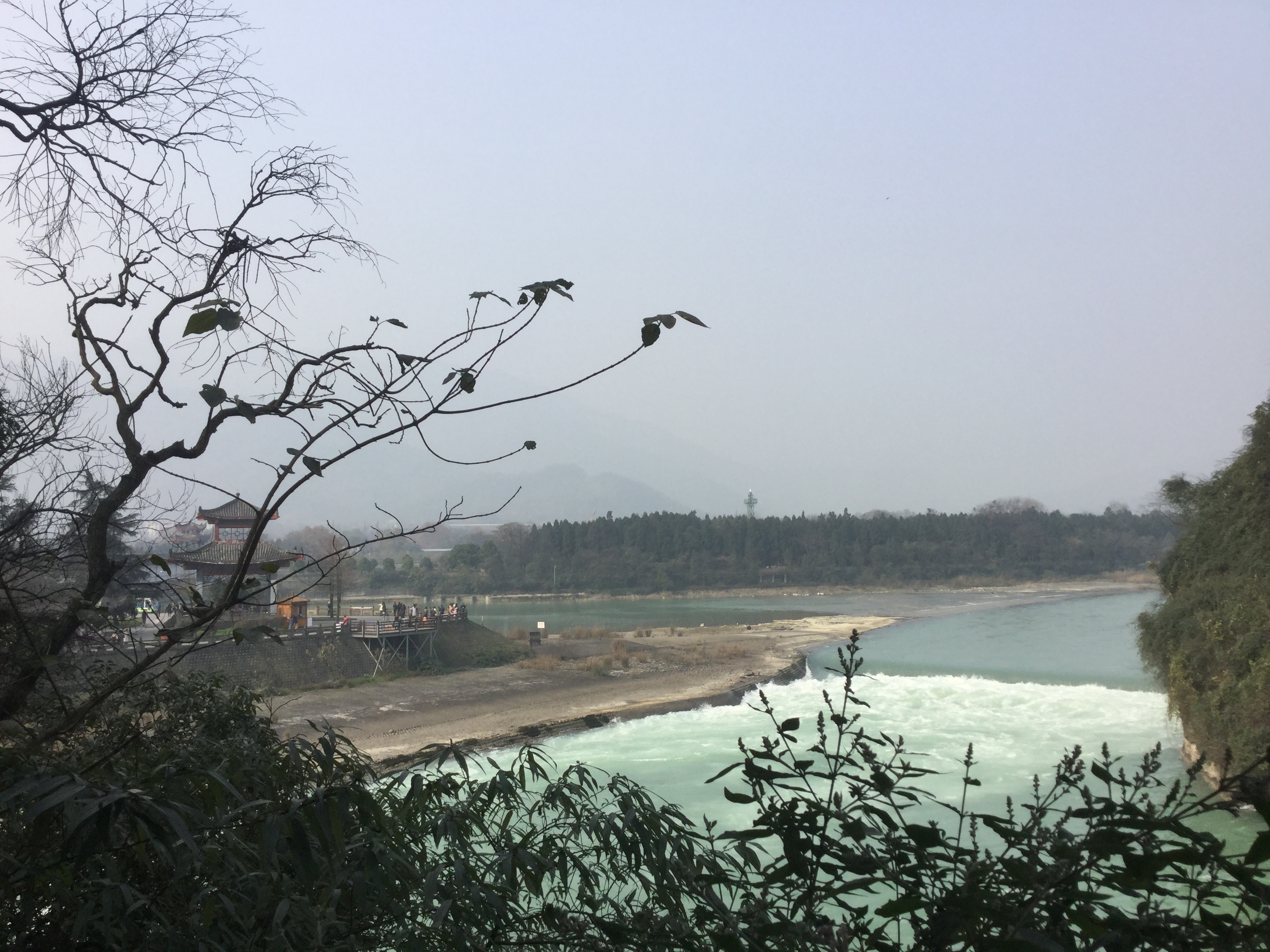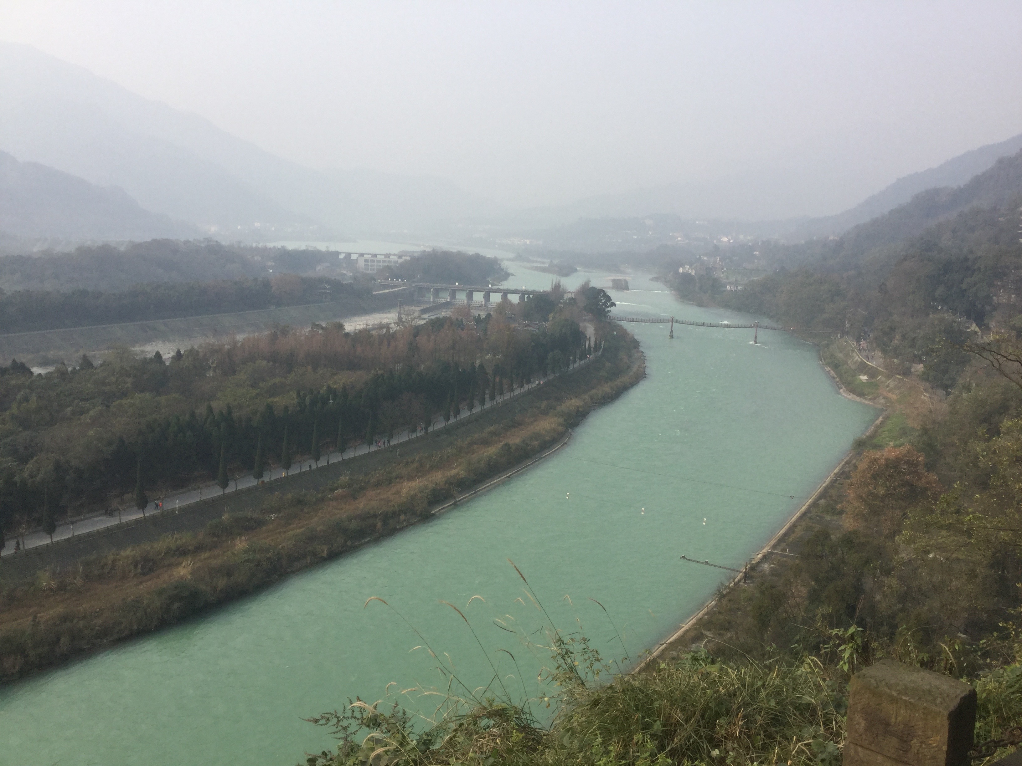 The above three pictures were taken in the well-known Dujiangyan Irrigation System (都江堰), the ancient irrigation project that was initially built about over two thousand years ago, and has been constantly strengthened since then. The project still works significantly today to mitigate flooding and provide sufficient water resources to the cities around. I have no idea how the project works though. It seems really complicated. But the main idea is to divide the main river into smaller tributaries of different directions, and cut the tributaries that are prone to flooding. I ‘risked my life’ taking the second picture because the wooden bridge was shaking. I was quite frightened although most people seemed to enjoy the shaking.